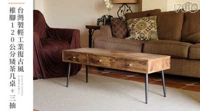 【特惠活動】輕工業復古風椎腳120公分矮茶几桌+三抽 新上市必買