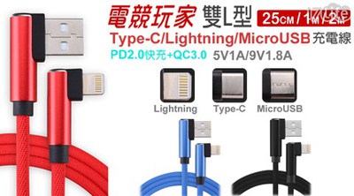 最近在網路上看很多鄉民都很推薦雙L型Type-C/Lightning/MicroUSB編織充電線 25CM