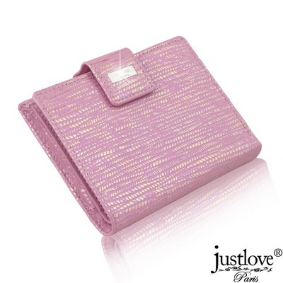 {皮夾網友評價}-justloveParis的法國名品時尚小牛真皮皮夾粉漾環皮壓釦真皮短夾~共2色 BW0150-4 骷