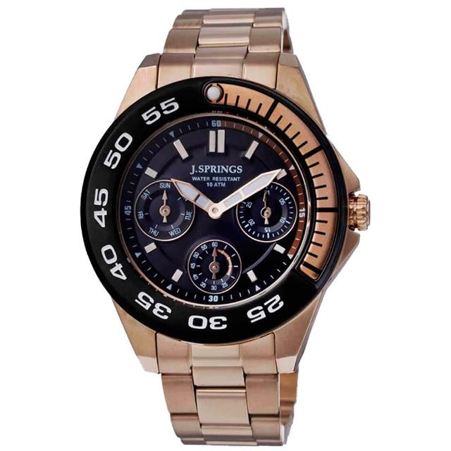 [石英錶]原廠公司貨-J.SPRINGS系列的八度空間三眼時尚腕錶-玫瑰金~JSBLA013