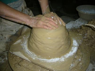 灑些水,開始拉坏~將底部多餘的土用掉~中間先拉出一個洞往外拉寬~再往上拉高請接續~夯(烘)爐の手拉坏【三】~ http://mypaper.pchome.com.tw/news/yun2204/3/...