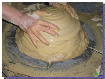 拉坏開始~~在拉坏的中途老爸會撥灑一些水到陶土裡,以方便拉坏‧‧‧~~請接續看【老爸_餅缸手拉坏-下半部(三)...