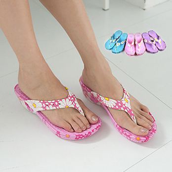 ◤Green Phoenix◥繽紛花朵防水夾腳坡跟海灘拖鞋36粉紅色 ↓暢銷排行↓