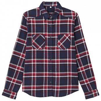 [MUJI 無印良品]女有機棉法蘭絨窄版合身襯衫L深紅紋樣 ☆好精彩☆