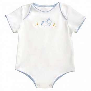 美國Bunnies By The Bay海灣兔,白兔藍邊短袖包臀衣(6~9M),Let’s Hop White Knit
