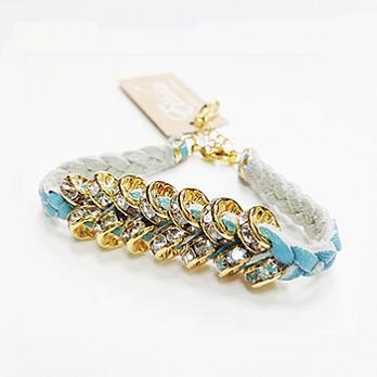 【Ettika】美國品牌~白鑽甜甜圈皮革編織幸運手環~嬰兒藍 ♣限時下殺♣