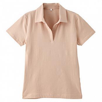 [MUJI 無印良品]女棉不易汗染V領POLO衫粉紅S ♣活動專區♣