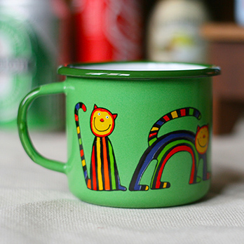 Smaltum布拉格 琺瑯杯 曲線喵咪_草綠(350ml) ★福利價★
