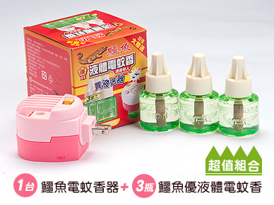 趨蚊好幫手!台灣老品牌-【鱷魚】優液體電蚊香(3罐裝)+電蚊香器