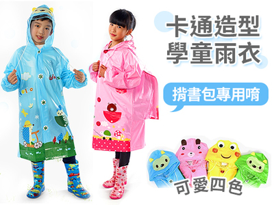 首頁 > 瘋生活 > 雨傘雨衣. 卡通造型學童雨衣(揹書包專用) 4色任選,書包可完全收在雨衣 裡 ...