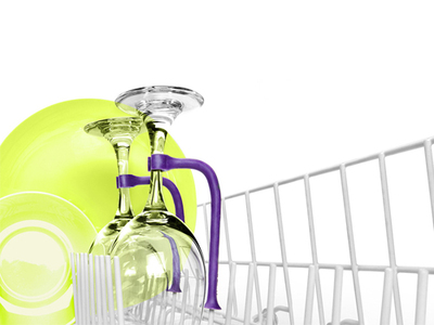 只要將Tether空心的一端插入洗碗機,另一端夾住高腳酒杯的杯座,即可輕鬆固定好高腳酒杯。