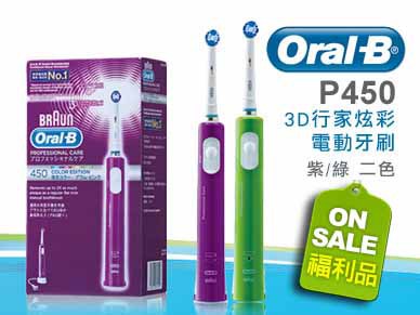 ✰福利品✰【德國百靈歐樂B】Oral-B-3D行家炫彩電動牙刷(P450)-紫/綠 ↓最新↓