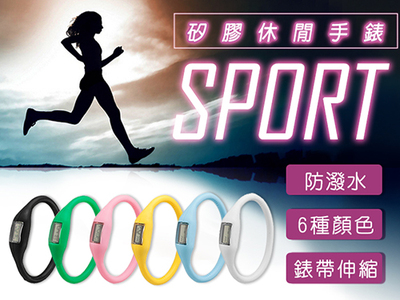 運動或戶外活動時,您不喜歡配帶皮革或金屬錶帶;一方面為了避免流汗傷害皮革、一方面避免金屬過重的手感。此時您可試試此款錶帶處以彈性矽膠製成的手環型手錶,最適合運動或戶外活動時配帶。可顯示時間與日期。
