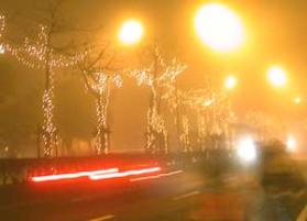 回家待了半天時間,驚醒時,夜深時刻已經來到,自己又要離開。車子出了老家巷口不久,發現整條馬路上燈火閃爍在一片迷濛當中,原來,至少還有一種熟悉留著,那就是自小就已經熟識的,家鄉特有的濃濃大霧。
