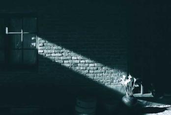 窗口下,鑽過樟樹枝枒落下的水銀燈光,恰巧落在海芋身上,恰巧,路過我心。