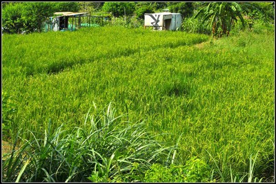 自己耕作的鄉間,是一個林口台地溪流切割出的山谷,從上遊而下,今年有三塊田地種植稻米,第一 塊是有機耕作的桃園3號香米,第二塊是我以自然農法耕作了五年的台秈10號,第三也是最大的一塊是大伯父以慣行農法種植了一輩子的蓬萊米。黃澄澄的香米和 大伯的蓬萊米已經即將收割,而我的稻子因為插秧的慢,現在還在充實階段,穀色仍然青綠。但這兩日途經三塊田地拍照,在我尚未成熟的稻田裡,總有一群麻雀飛 起。