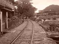 在快接近十分車站的時候,鐵道進入了十分社區,老舊的社區和鐵道靠的極近,許多人家門前的小徑是直接通到鐵軌上的,在這裡鐵軌邊沒有護欄,更沒有高築的水泥牆,有的只是幾叢開著粉紅色花朵的杜鵑和不知名的盆栽。鐵軌和狹窄的街道平行,宛如孿生的兄弟。這是我第一次發現,鐵道與建築竟是這般的親密,或者我應該說,鐵道竟與人這般的親密。