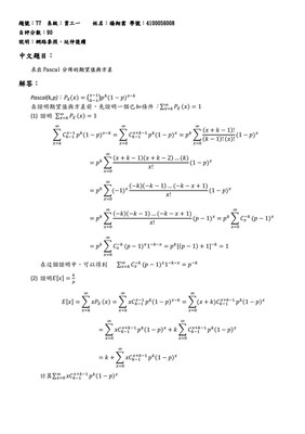 中文題目:求出Pascal分佈的期望值與方差有需要 word 檔案,則留言通知!這只是我的作業,因此不代表 100% 正確加分題77-Pascal分佈-資工一-楊翔雲-4100056008-page-...