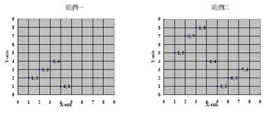 A 是新的點在曲線上的點, 都可以跟 A 做一個無礙的矩形, 曲線上的 第二象限跟第四象限,第一象限 跟 第三象限, 有可能之前存在無礙的矩形, 就必須被砍除/**********************************************************************************//* Problem: b067 "6. 下棋問題" from 94全國資訊學科能力決賽 *//* Language: C *//* Result: AC(172ms, 24.7MB) judge by this@ZeroJudge *//* Author: morris1028 at 2011-09-10 22:43:49 *//**********************************************************************************/#include<stdio.h>#include<string.h>#define oo 2147483647char link[25000001];struct { int x, y, num;}Point[5001];int First[5001], Second[5001], Third[5001], Fourth[5001];int Calu(int x, int y, int n, int idx) { int Fy = oo, Sy = oo, Ty = -oo, Fthy = -oo; int i, j, Ft, St, Tt, Ftht; Ft = St = Tt = Ftht = 0; for(i = idx+1; i <= n; i++) { if(Point[i].y > y) { if(Point[i].y < Fy) { Fy = Point[i].y; First[Ft++] = Point[i].num; } } else { if(Point[i].y > Fthy) { Fthy = Point[i].y; Fourth[Ftht++] = Point[i].num; } } } for(i = idx-1; i >= 0; i--) { if(Point[i].y > y) { if(Point[i].y < Sy) { Sy = Point[i].y; Second[St++] = Point[i].num; } } else { if(Point[i].y > Ty) { Ty = Point[i].y; Third[Tt++] = Point[i].num; } } } int nodex = Point[idx].num, nodey; int Ans = Ft + St + Tt + Ftht; for(i = 0; i < Ft; i++) { nodey = First[i]; link[nodex*5000+nodey] = 1; link[nodey*5000+nodex] = 1; } for(i = 0; i < St; i++) { nodey = Second[i]; link[nodex*5000+nodey] = 1; link[nodey*5000+nodex] = 1; } for(i = 0; i < Tt; i++) { nodey = Third[i]; link[nodex*5000+nodey] = 1; link[nodey*5000+nodex] = 1; } for(i = 0; i < Ftht; i++) { nodey = Fourth[i]; link[nodex*5000+nodey] = 1; link[nodey*5000+nodex] = 1; } for(i = 0; i < Ft; i++) { for(j = 0; j < Tt; j++) { nodex = First[i], nodey = Third[j]; if(link[nodex*5000+nodey]) Ans--, link[nodex*5000+nodey] = 0; } } for(i = 0; i < St; i++) { for(j = 0; j < Ftht; j++) { nodex = Second[i], nodey = Fourth[j]; if(link[nodex*5000+nodey]) Ans--, link[nodex*5000+nodey] = 0; } } return Ans;}main() { int n, i, j, x, y; while(scanf("%d", &n) == 1) { memset(link, 0, sizeof(link)); long long A = 0, B = 0, Score = 0; for(i = 0; i < n; i++) { scanf("%d %d", &x, &y); for(j = i-1; j >= 0; j--) if(Point[j].x > x) Point[j+1] = Point[j]; else break; Point[j+1].x = x, Point[j+1].y = y, Point[j+1].num = i; Score += Calu(x, y, i, j+1); if(i&1) B += Score; else A += Score; } printf("%lld %lld\n", A, B); } return 0;}