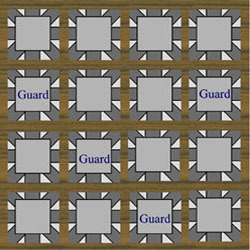 in column 1 the guard is placed on row 2, in column 2 the guard is placed on