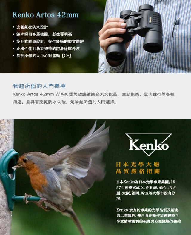 【Kenko】Kenko Artos 8X42 W 雙筒望遠鏡(公司貨) 討論,推薦,開箱,CP值,熱賣,團購,便宜,優惠,介紹,排行,精選,特價,周年慶,體驗,限時