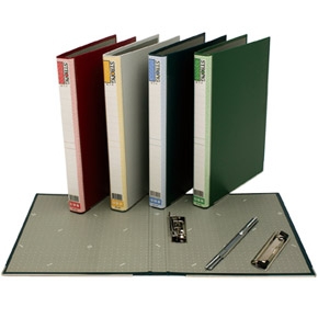 ◆材質:再生紙板裱褙環保合成紙 ◆特色:彩色背條方便資料分類,加裝鐵半框防撞擊