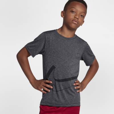 Nike Dri-FIT Breathe 大童 (男童) 短袖訓練上衣採用排汗材質製作,有助保持乾爽舒適。