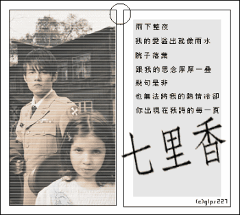那透明d窗 〃 照出我d影ㄗ 〃 影ㄗ好似哭泣 〃 我d臉頰也留下充滿疑問d淚 〃 抗到影ㄗ孤單身影 〃 好像在告誡我d寂寞 〃 ...