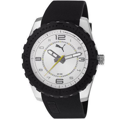 PUMA Cross 競速奔馳流線矽膠腕錶-銀白x黃 /46mm