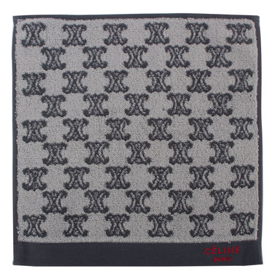 CELINE 經典滿版LOGO雙面純棉小方巾-深藍/灰