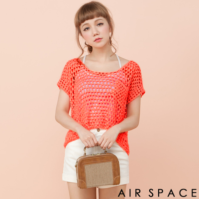 AIR SPACE 細緻洞洞鏤空感小口袋針織衫上衣(甜漾橘)