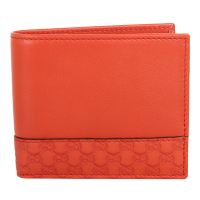 新品加碼GUCCI 橘紅色G-logo壓紋雙拼布皮革雙折短夾