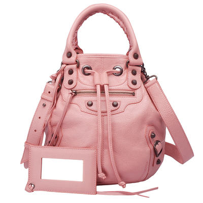 BALENCIAGA Mini Pompon小釦手提/斜背圓桶機車包(粉紅)