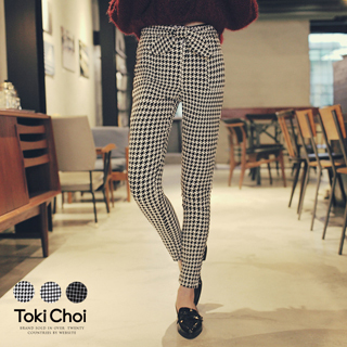 【東京著衣】黑白圖樣蝴蝶綁結窄管褲-S.M.L(日系)