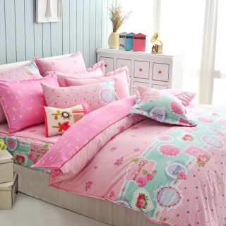 【美夢元素】精梳純棉雙人孕韟‘Q棉兩用被床包組(花季戀曲)