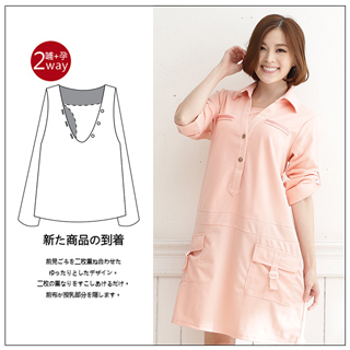 【艾琳媽咪屋-微醺秋意】厚棉純色大口袋造型X襯衫反摺袖哺乳洋裝/娃娃裝-2WAY孕哺
