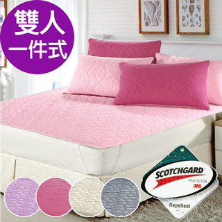 【三浦太郎】雙色幸運草3M防潑水雙人一件式舖棉平單保潔墊/5色任選