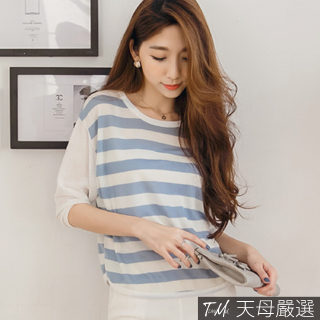 商品網址:【天母嚴選】條紋接袖短版針織衫(共二色)