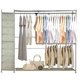 【巴塞隆納】雙層雙桿伸縮衣櫥附抽屜櫃(無防塵)